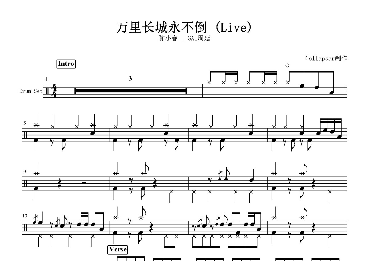 陈小春/GAI周延《万里长城永不倒》鼓谱 - 架子鼓谱