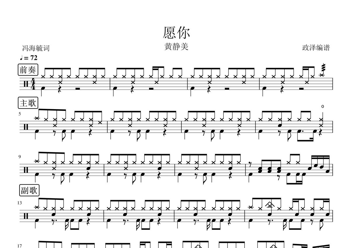 黄静美《愿你》鼓谱 - 架子鼓谱