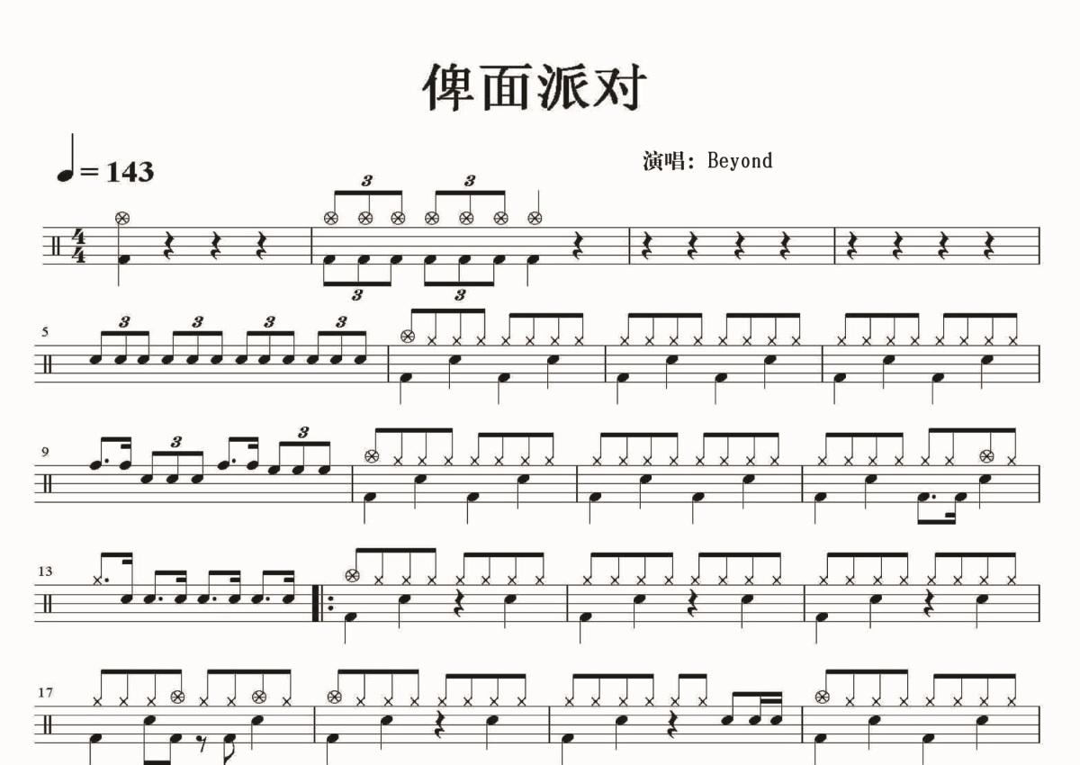 Beyond《俾面派对》鼓谱 - 架子鼓谱