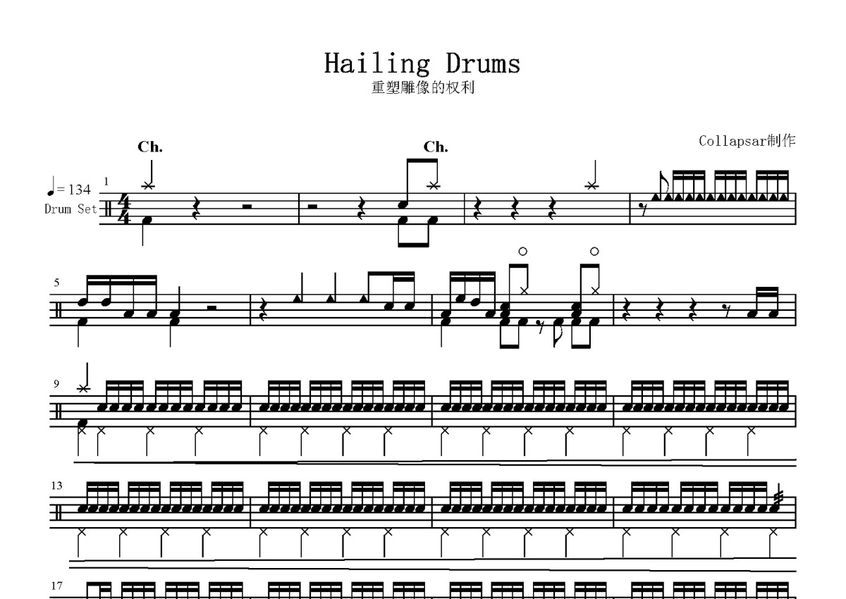重塑雕像的权利《HAILING DRUMS》鼓谱 - 架子鼓谱