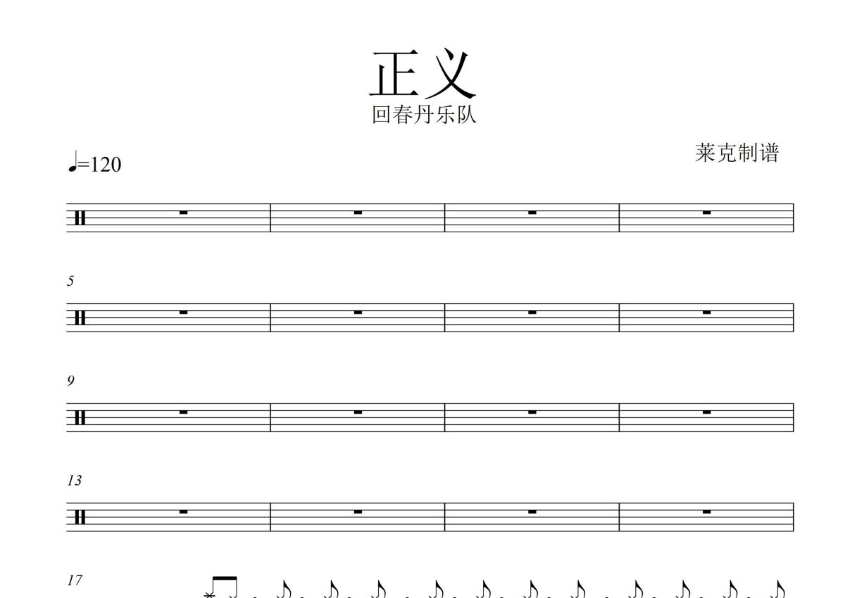 回春丹乐队《正义》鼓谱 - 架子鼓谱
