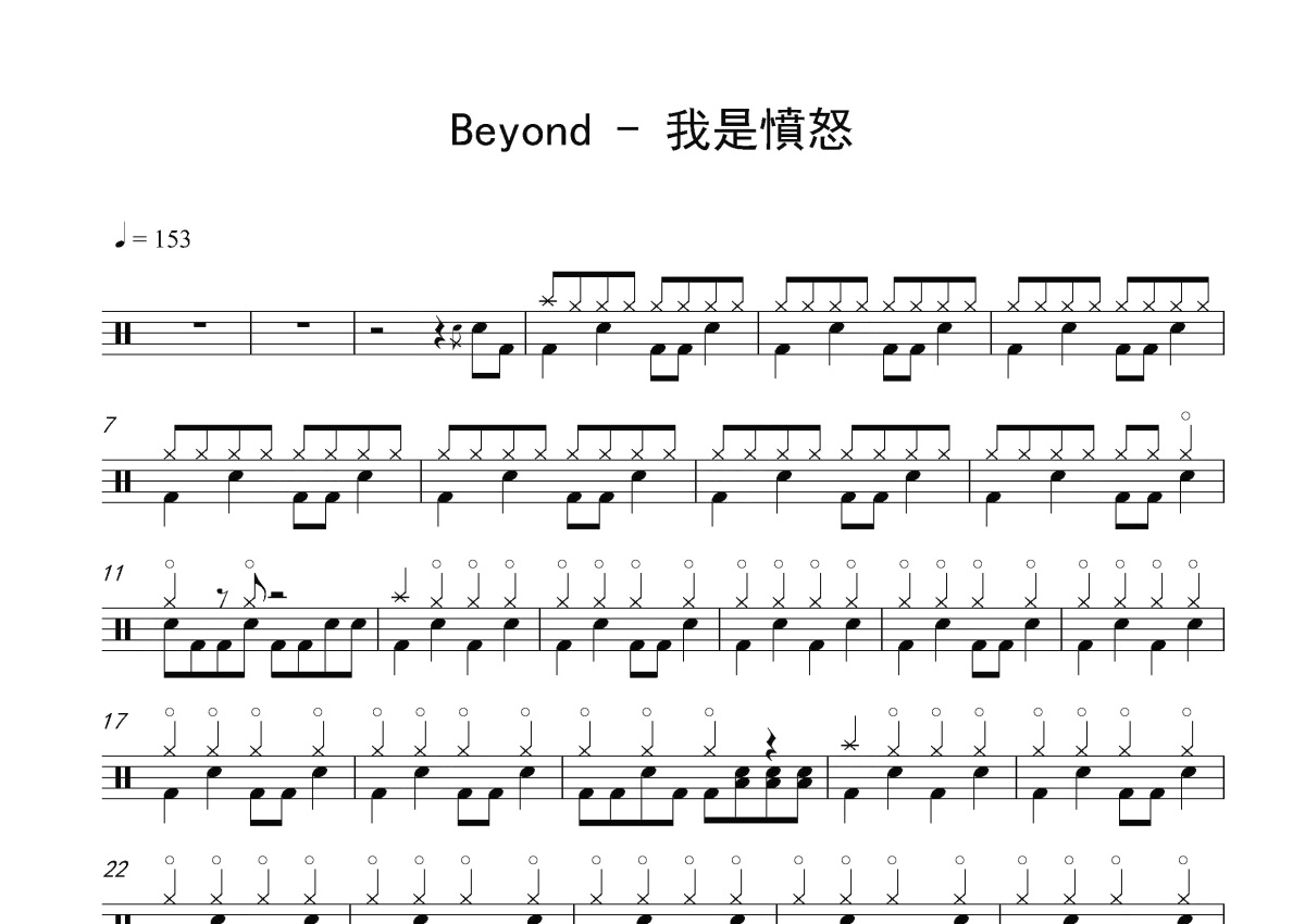 Beyond《我是愤怒》鼓谱 - 架子鼓谱