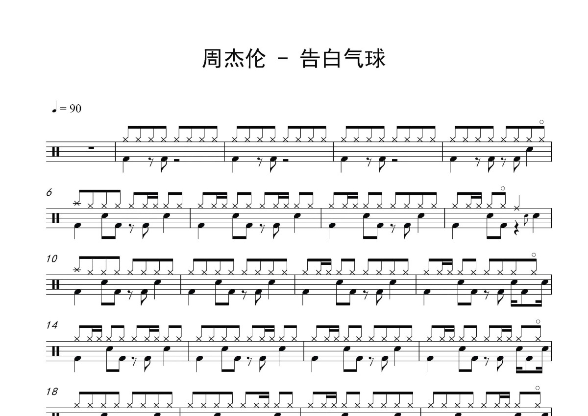 周杰伦《告白气球》鼓谱 - 架子鼓谱