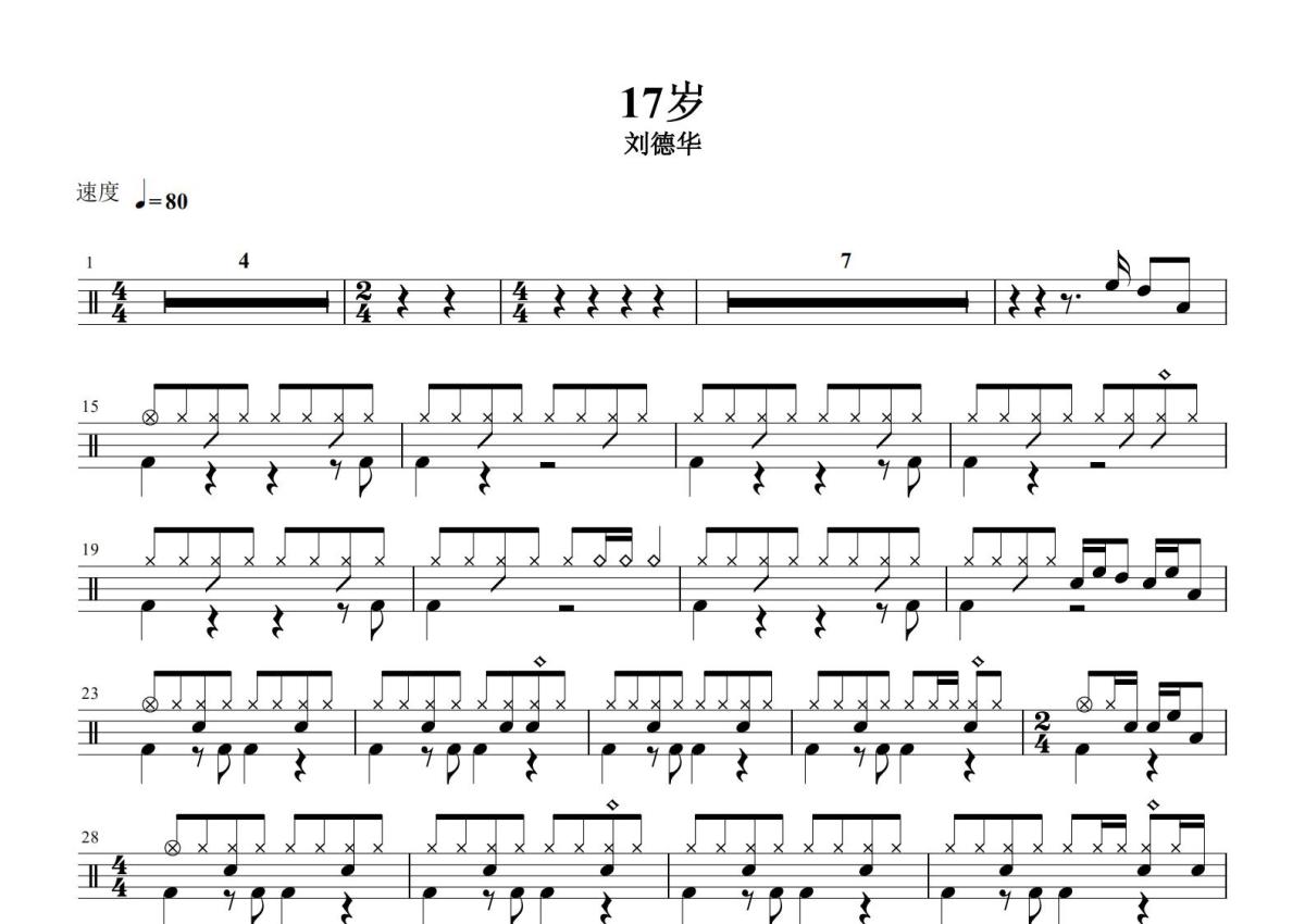 刘德华《17岁》鼓谱 - 架子鼓谱