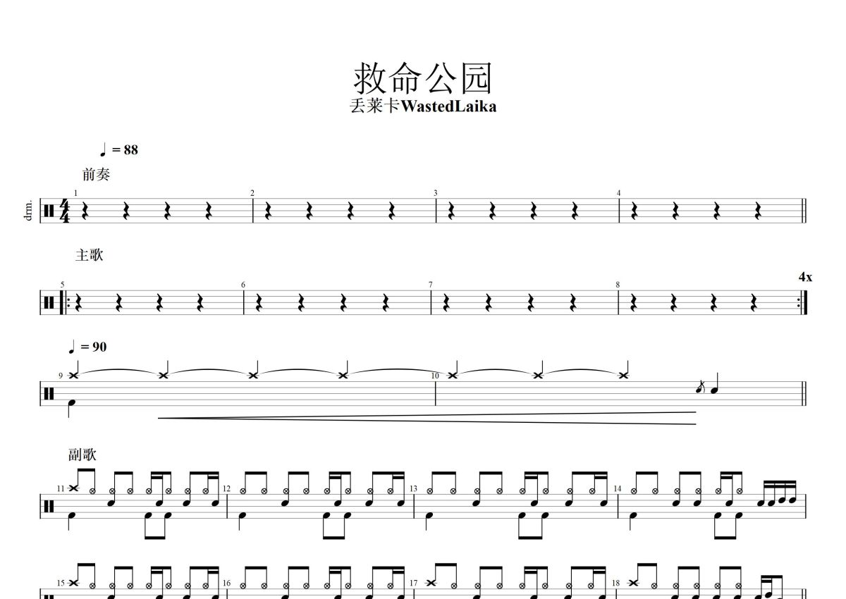 丢莱卡WastedLaika《救命公园》鼓谱 - 架子鼓谱