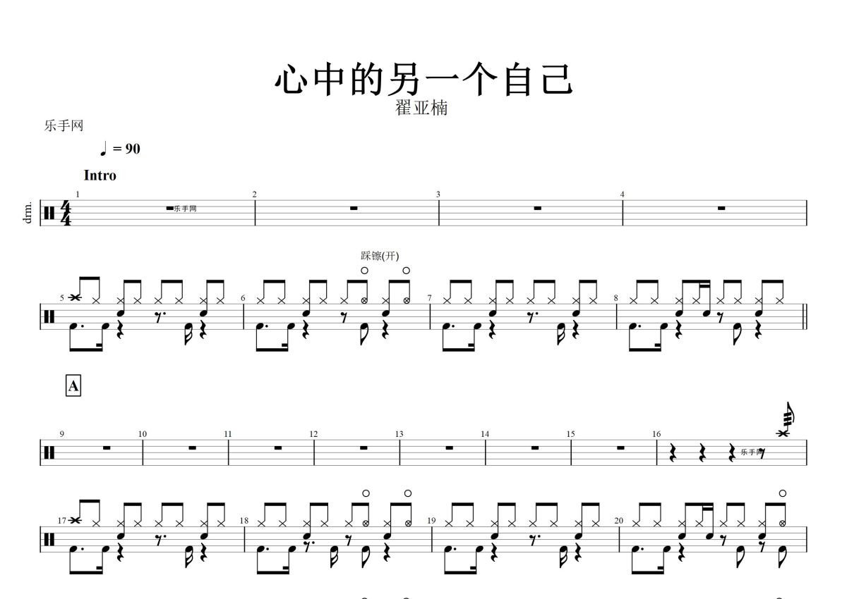 翟亚楠《心中的另一个自己》鼓谱 - 架子鼓谱