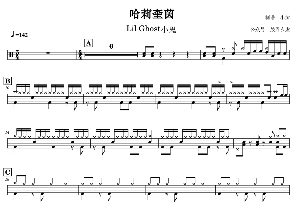 Lil Ghost小鬼《哈莉·奎因》鼓谱 - 架子鼓谱