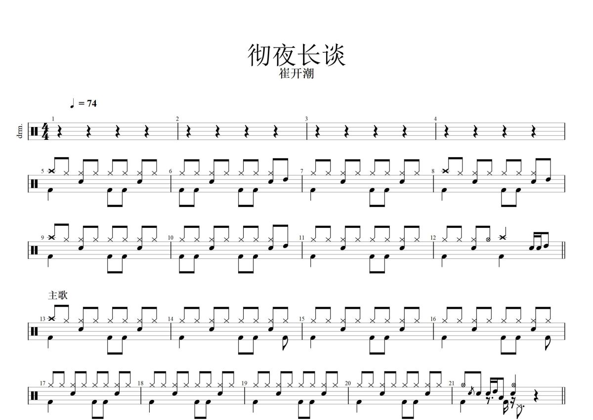 崔开潮《彻夜长谈》鼓谱 - 架子鼓谱