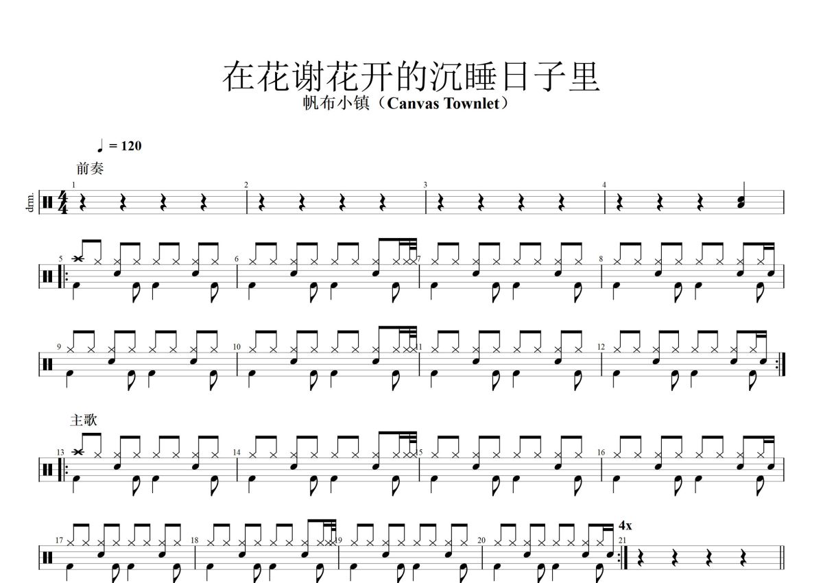 帆布小镇(Canvas Townlet)《在花谢花开的沉睡日子里》鼓谱 - 架子鼓谱