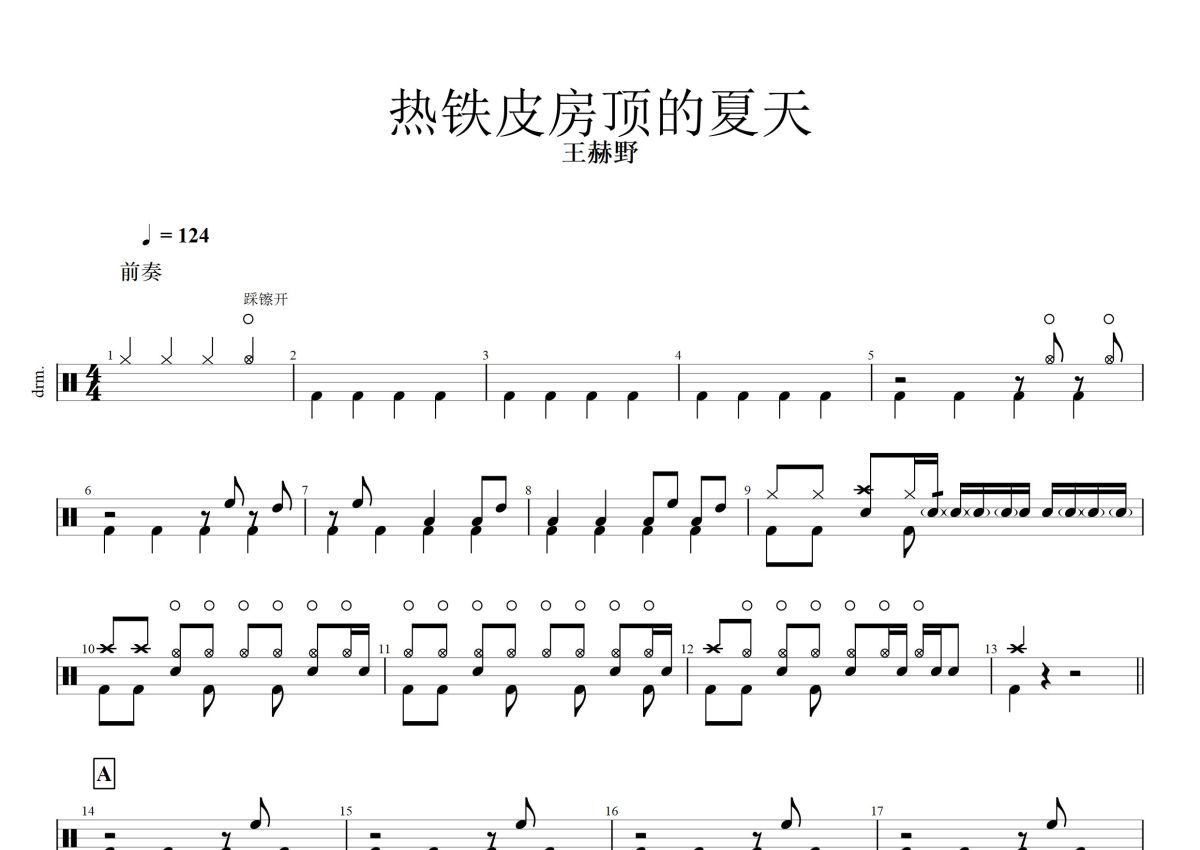王赫野《热铁皮房顶的夏天》鼓谱 - 架子鼓谱