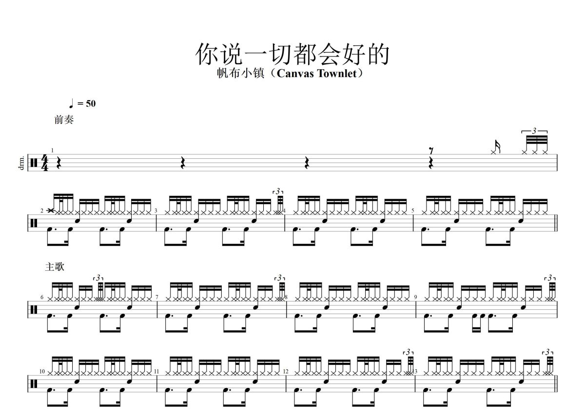 帆布小镇(Canvas Townlet)《你说一切都会好的》鼓谱 - 架子鼓谱