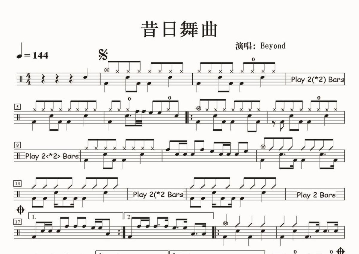 Beyond《昔日舞曲》鼓谱 - 架子鼓谱