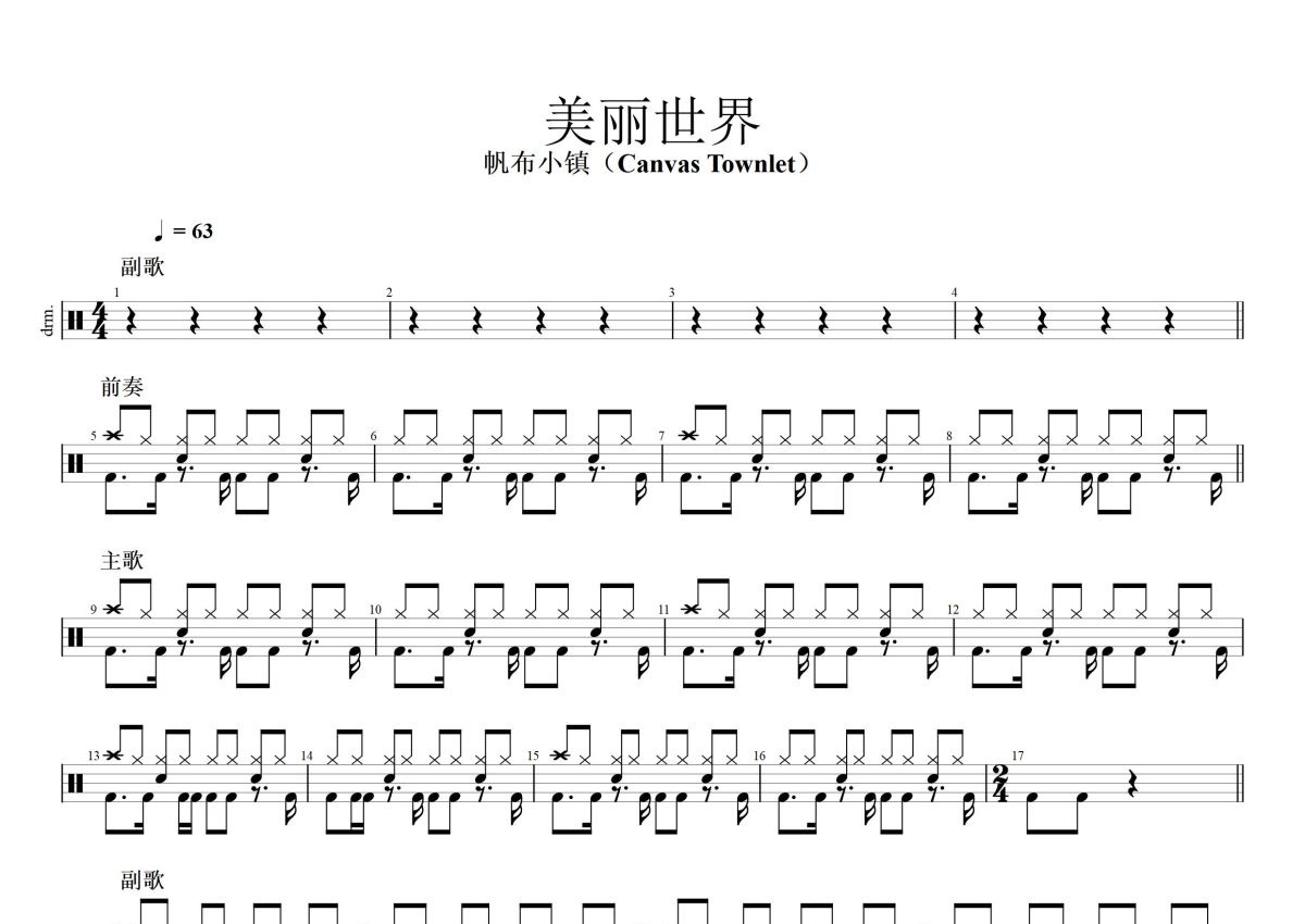帆布小镇(Canvas Townlet)《美丽世界》鼓谱 - 架子鼓谱