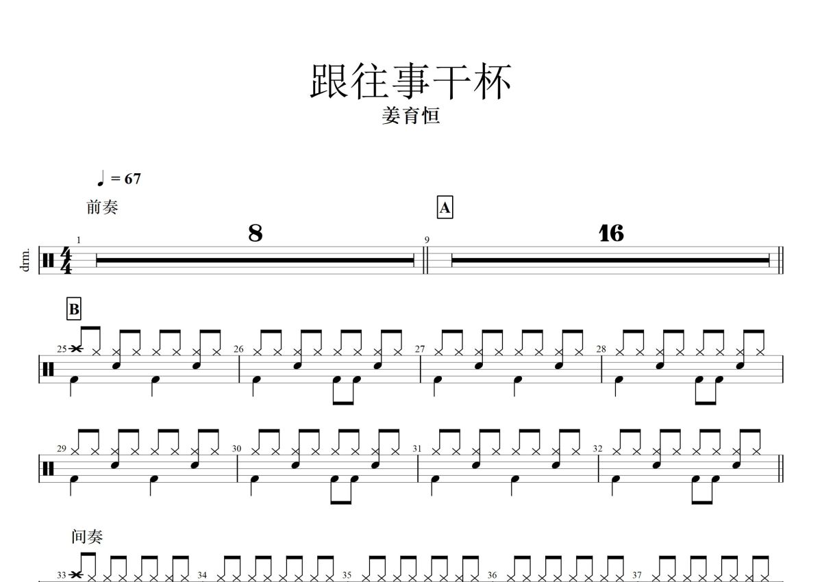 姜育恒《跟往事干杯》鼓谱 - 架子鼓谱