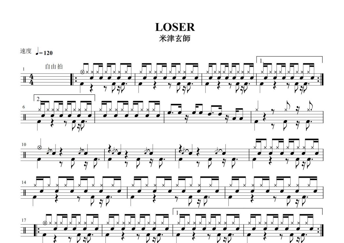 米津玄师《Loser》鼓谱 - 架子鼓谱