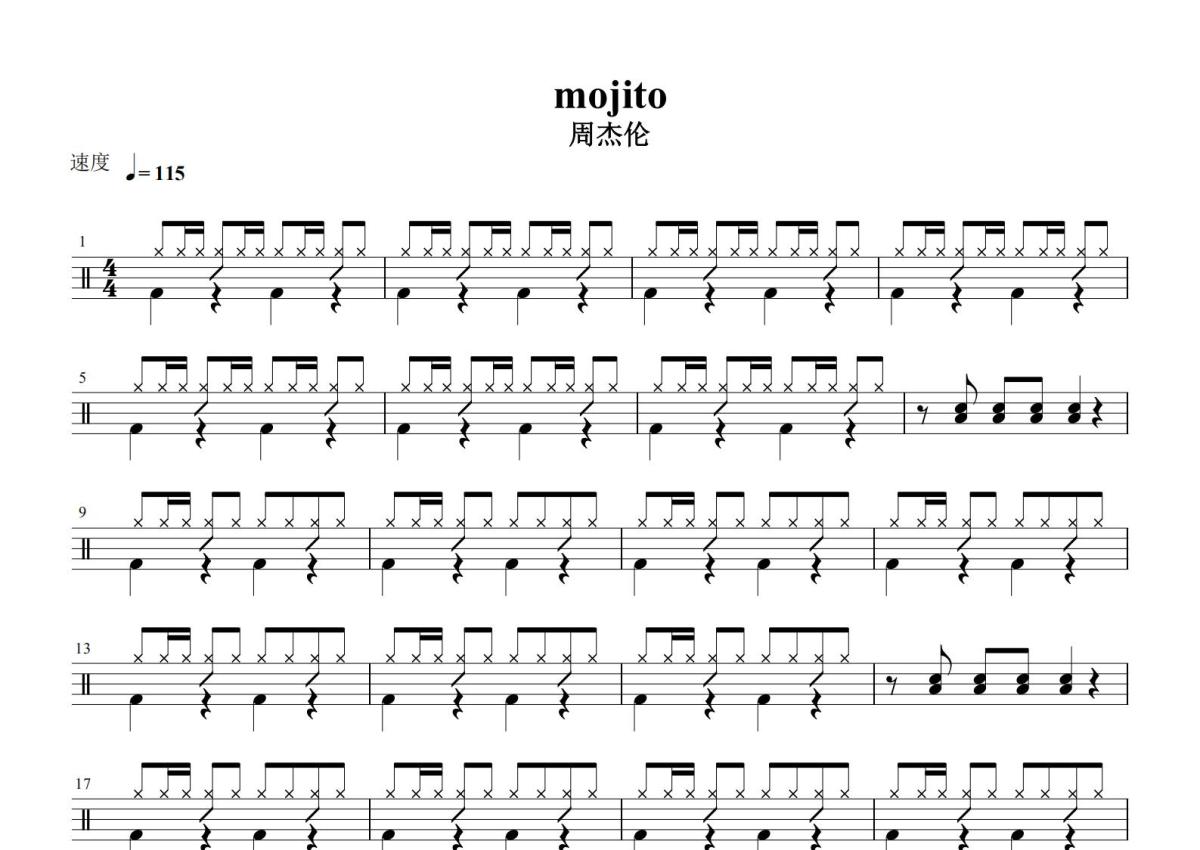 周杰伦《Mojito》鼓谱 - 架子鼓谱