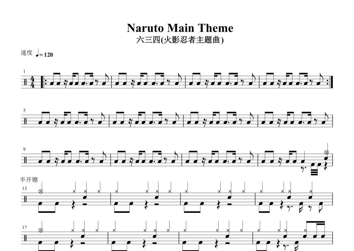火影忍者主题曲《Naruto Main Theme》鼓谱 - 架子鼓谱