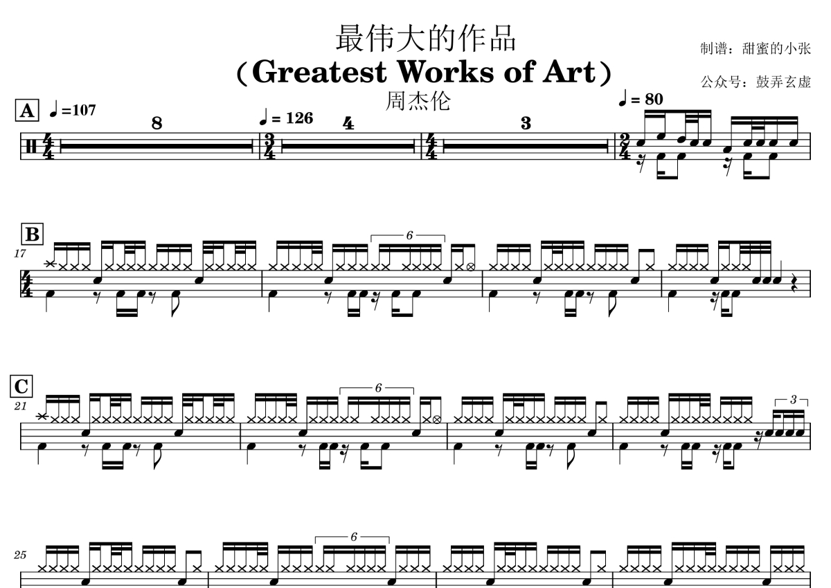 周杰伦《最伟大的作品》鼓谱 - 架子鼓谱