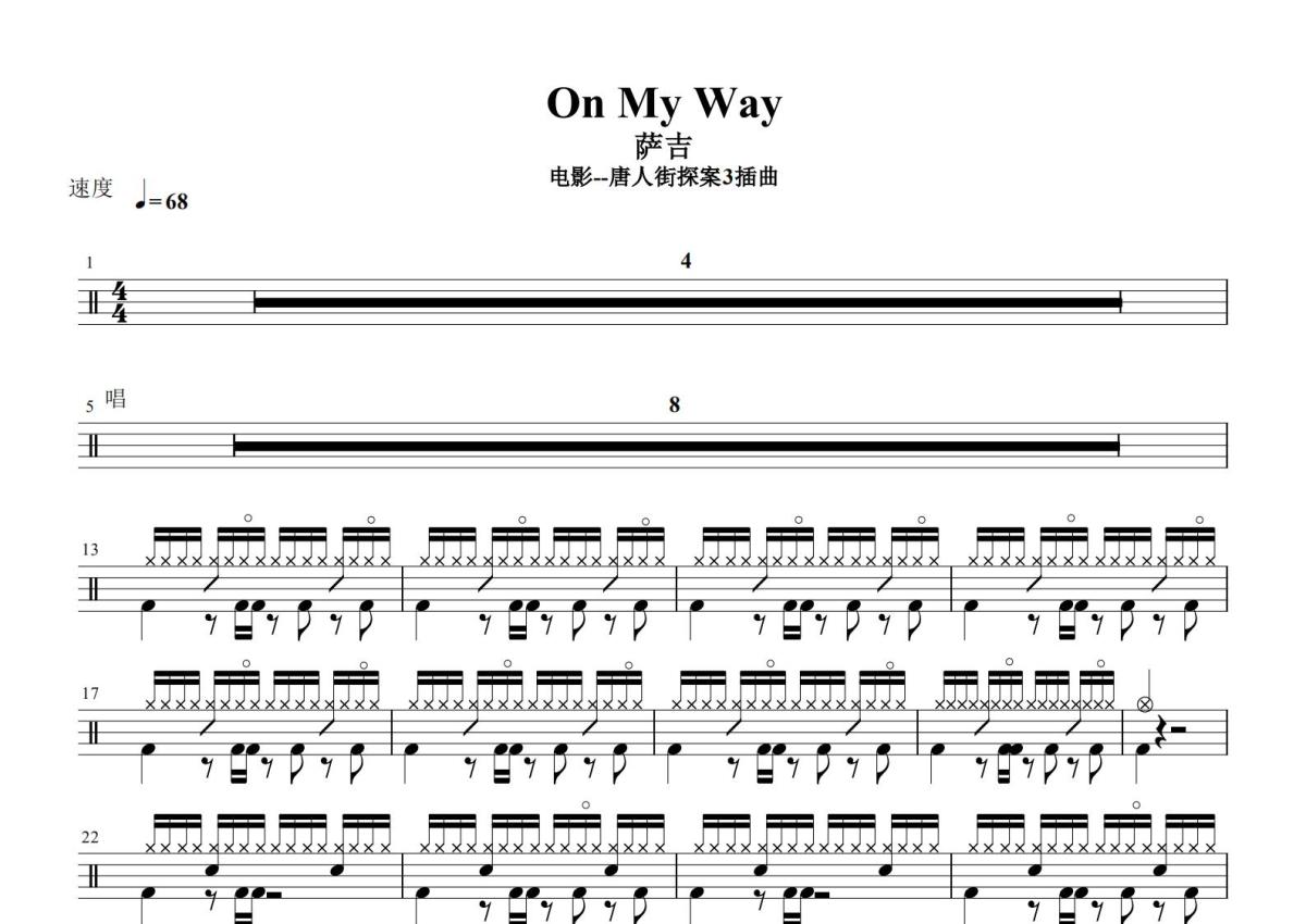 《On My Way》是Alan Walke演唱的一首歌曲,这份鼓谱共有两张高清图谱,图谱由 @打鼓谱 编配上传,图谱使用五线谱编配,使用这份On My Way架子鼓谱,你将能够轻松地敲打出这首Alan Walke的On My Way,快来尝试吧。《On My Way》是挪威电音制作人Alan Walker制作的单曲,由Sabrina Carpenter&Farruko演唱,收录在专辑《On My Way》中。同时这首歌也是《和平精英》盛夏推广曲及SS2赛季主题曲。这里的“Way”应当有“人生之路”的含义。