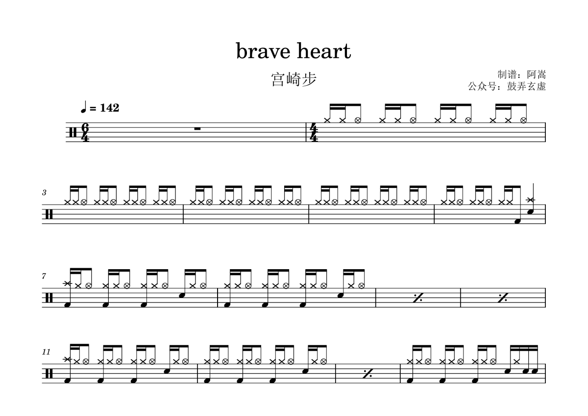 宮崎歩《brave heart》鼓谱 - 架子鼓谱