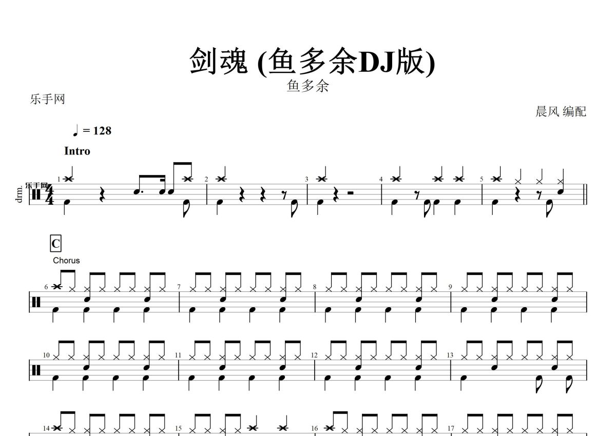 鱼多余《剑魂》鼓谱 - 架子鼓谱 - 鱼多余DJ版