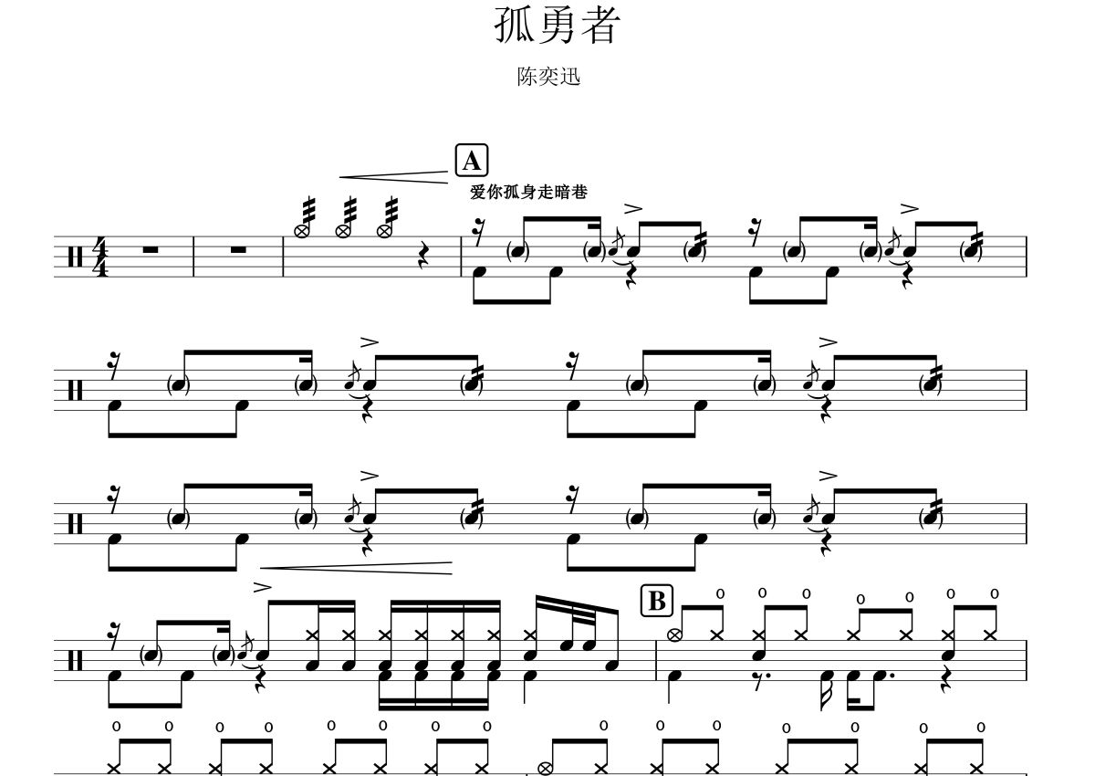 陈奕迅《孤勇者》鼓谱 - 架子鼓谱