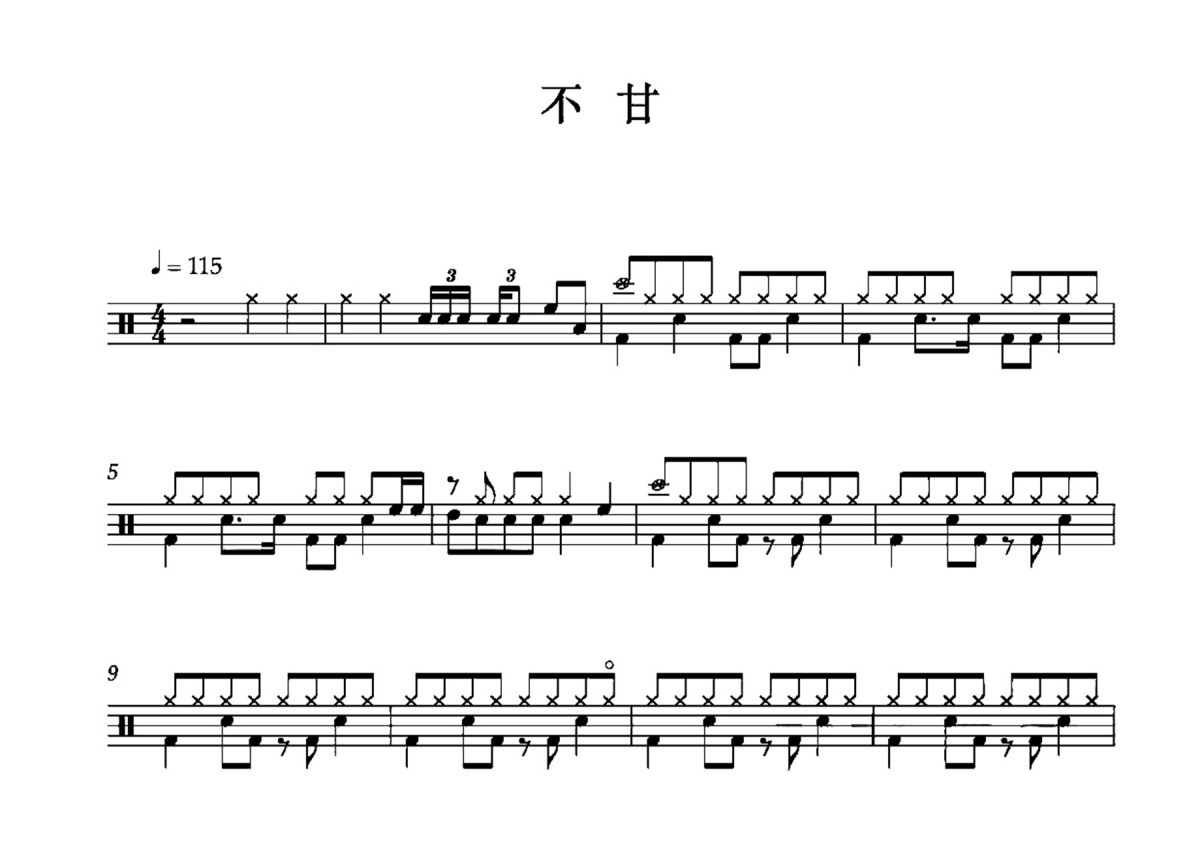 佚名《不甘》鼓谱 - 架子鼓谱
