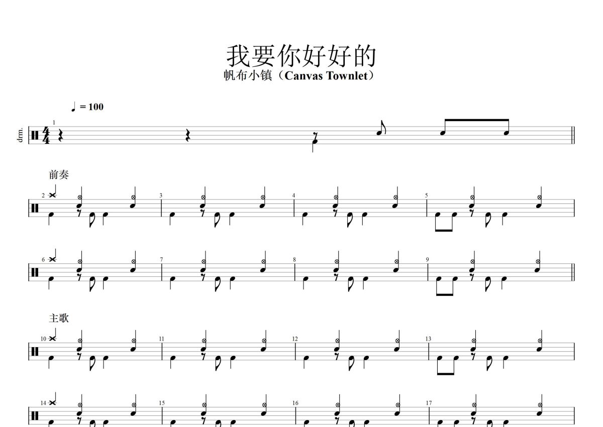 帆布小镇(Canvas Townlet)《我要你好好的》鼓谱 - 架子鼓谱
