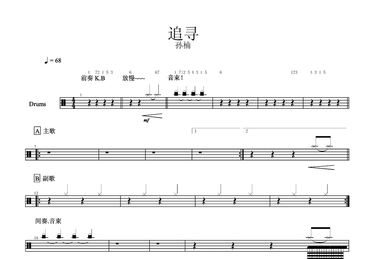 孙楠《追寻》鼓谱 - 架子鼓谱