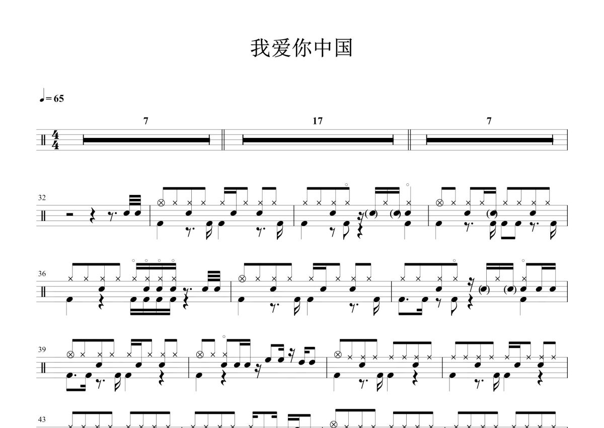 汪峰《我爱你中国》鼓谱 - 架子鼓谱