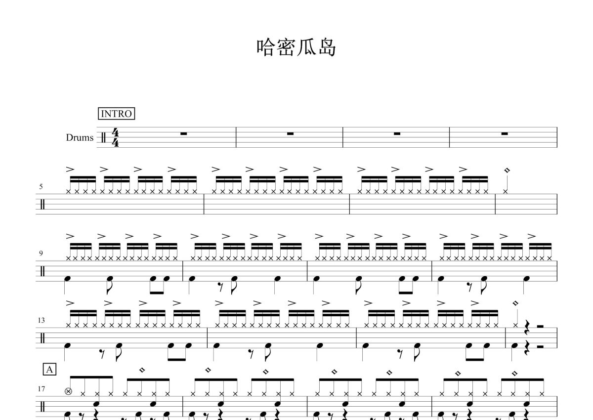 哈密瓜岛《哈密瓜岛》鼓谱 - 架子鼓谱