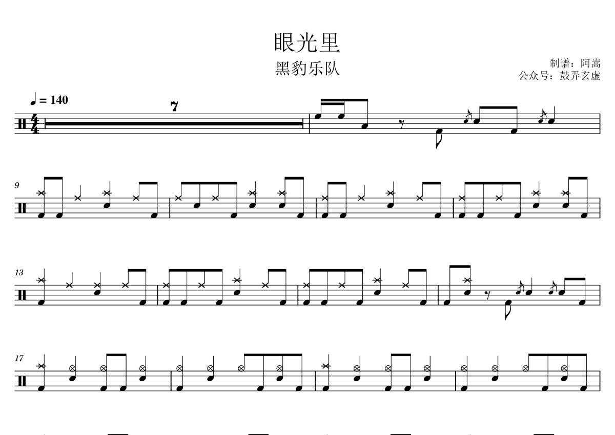 黑豹乐队《眼光里》鼓谱 - 架子鼓谱