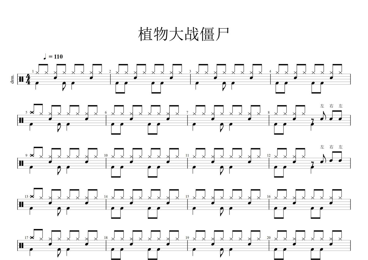 XXX《植物大战僵尸(简单版)》鼓谱 - 架子鼓谱