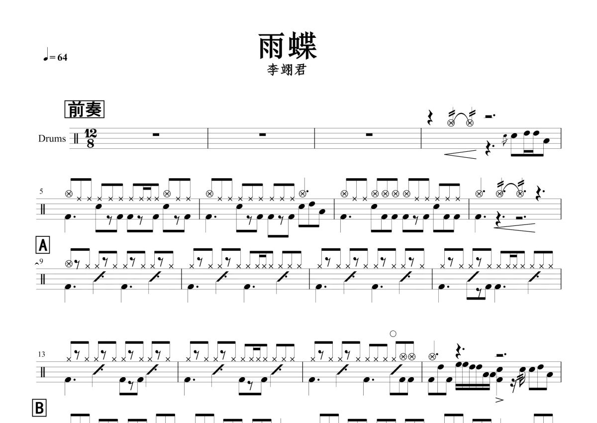 李翊君《雨蝶》鼓谱 - 架子鼓谱