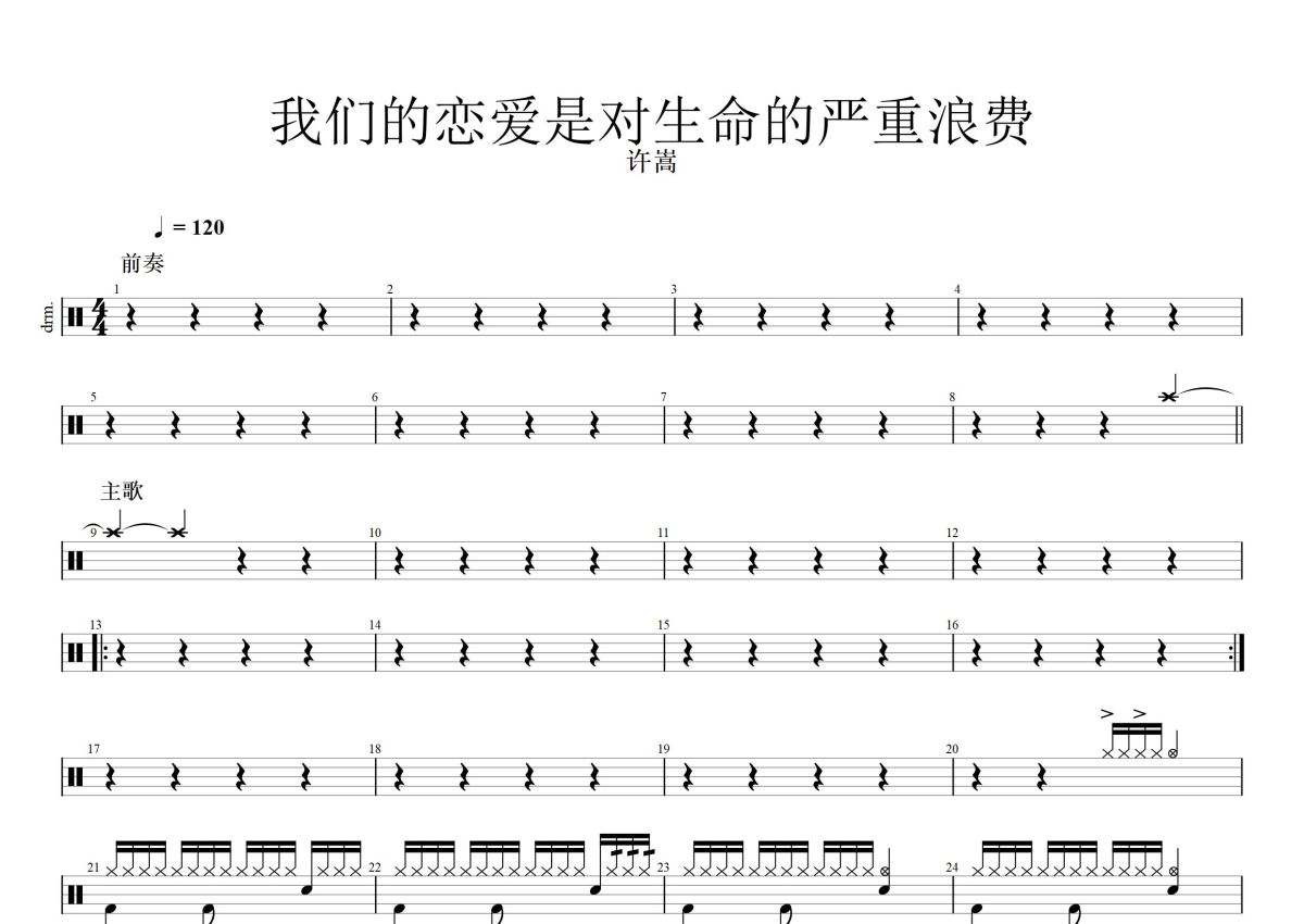 许嵩《我们的恋爱是对生命的严重浪费》鼓谱 - 架子鼓谱