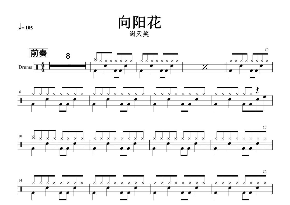 《向阳花》是谢天笑演唱的一首歌曲,这份鼓谱共有五张高清图谱,图谱由 @打鼓谱 编配上传,图谱使用五线谱编配,使用这份向阳花架子鼓谱,你将能够轻松地敲打出这首谢天笑的向阳花,快来尝试吧。摇滚的三支花之一,经典中的经典。