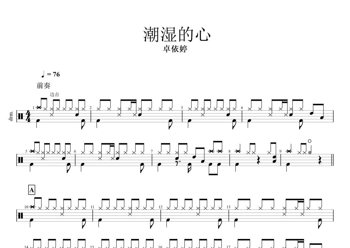 卓依婷《潮湿的心》鼓谱 - 架子鼓谱