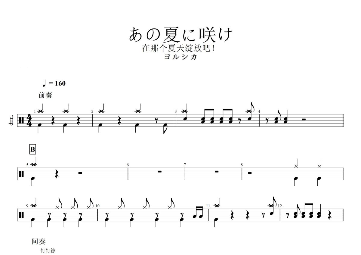 ヨルシカ《あの夏に咲け(在那个夏天绽放吧)》鼓谱 - 架子鼓谱