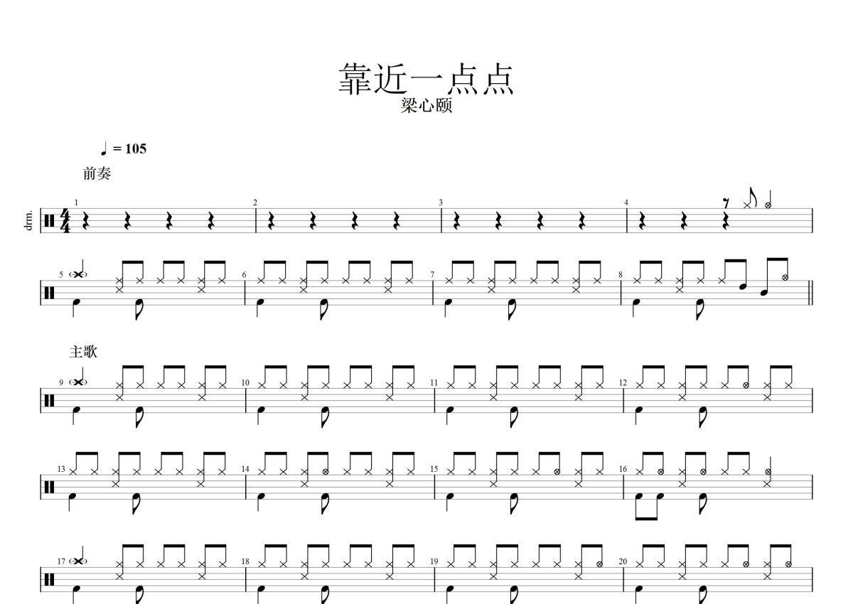靠近一点点《靠近一点点》鼓谱 - 架子鼓谱