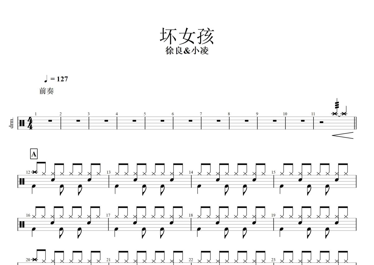 徐良&小凌《坏女孩》鼓谱 - 架子鼓谱