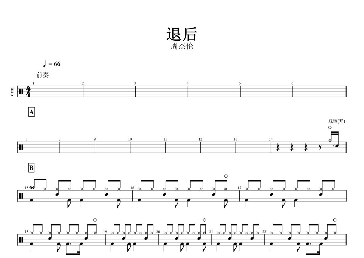 周杰伦《退后》鼓谱 - 架子鼓谱