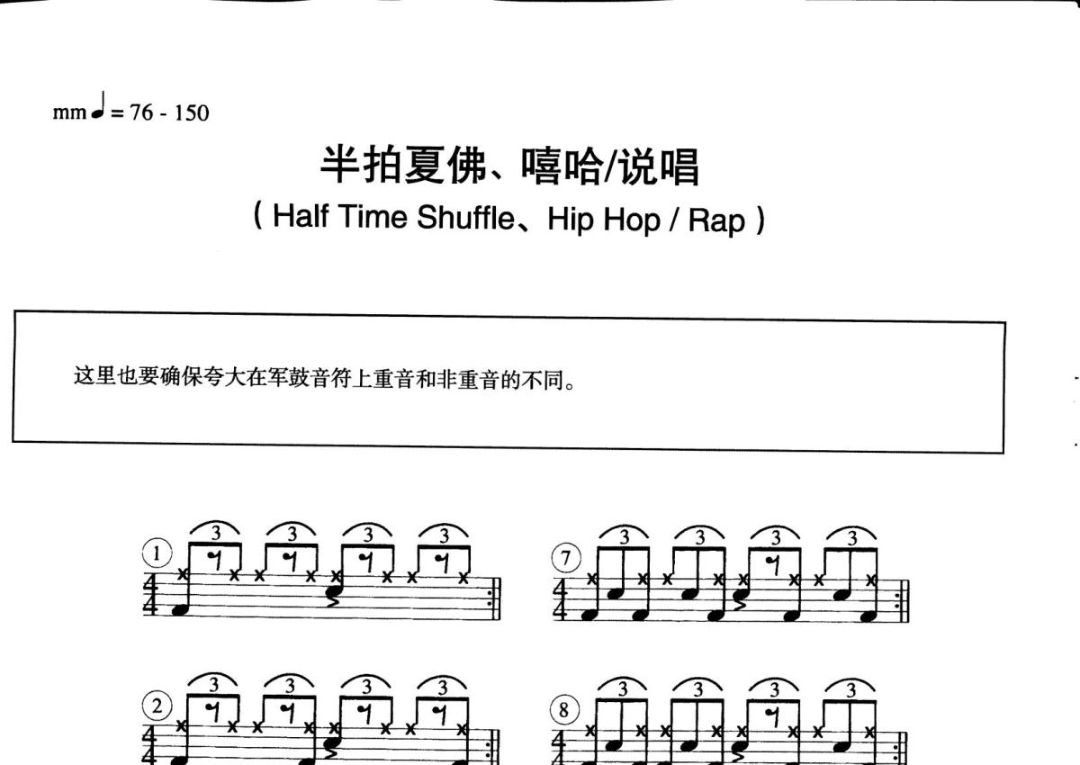 节奏大全《半拍夏佛、嘻哈/说唱》鼓谱 - 架子鼓谱