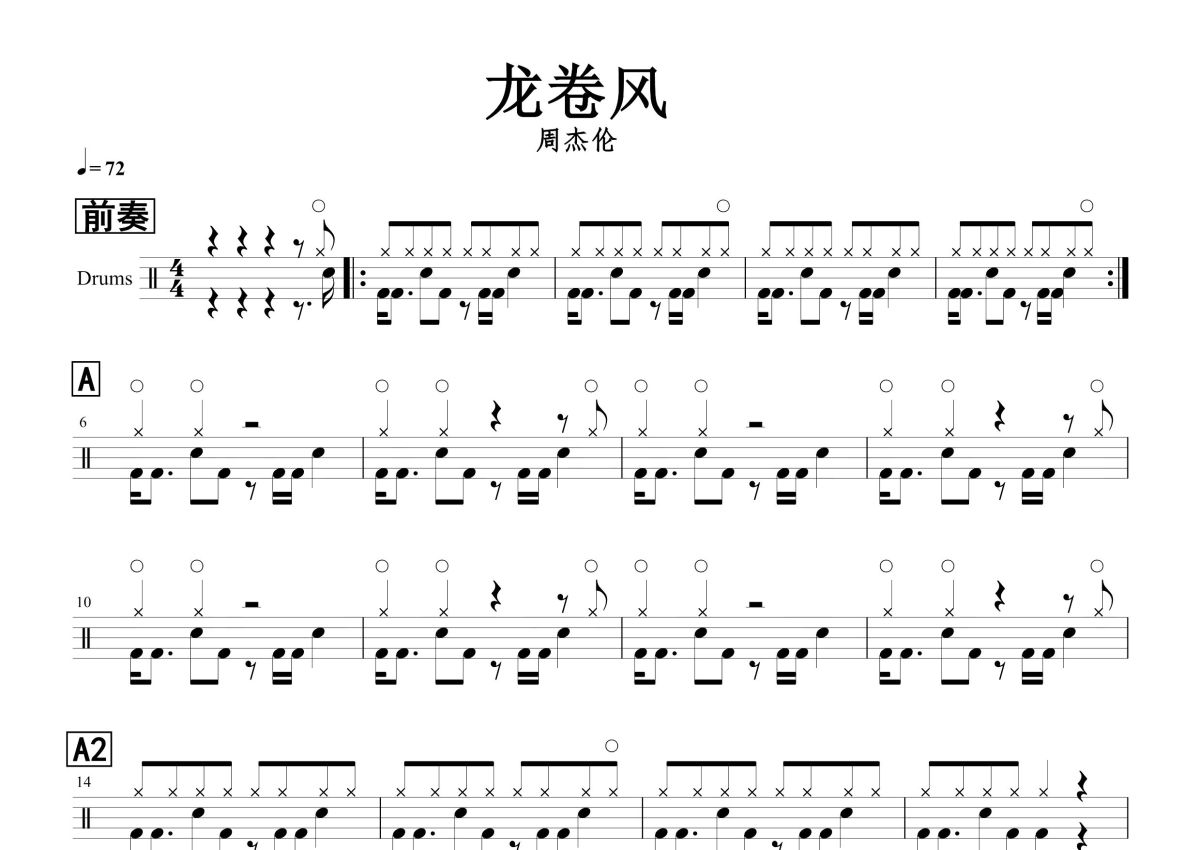 周杰伦《龙卷风》鼓谱 - 架子鼓谱