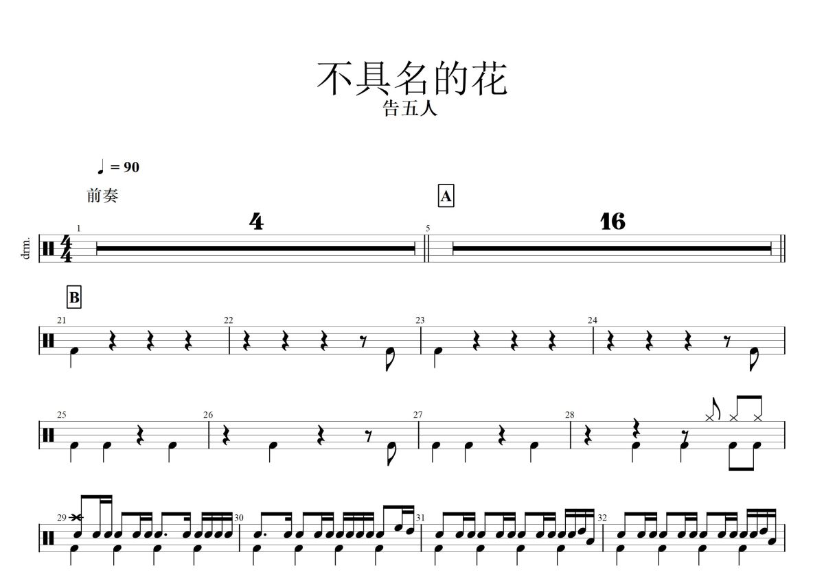 告五人《不具名的花》鼓谱 - 架子鼓谱
