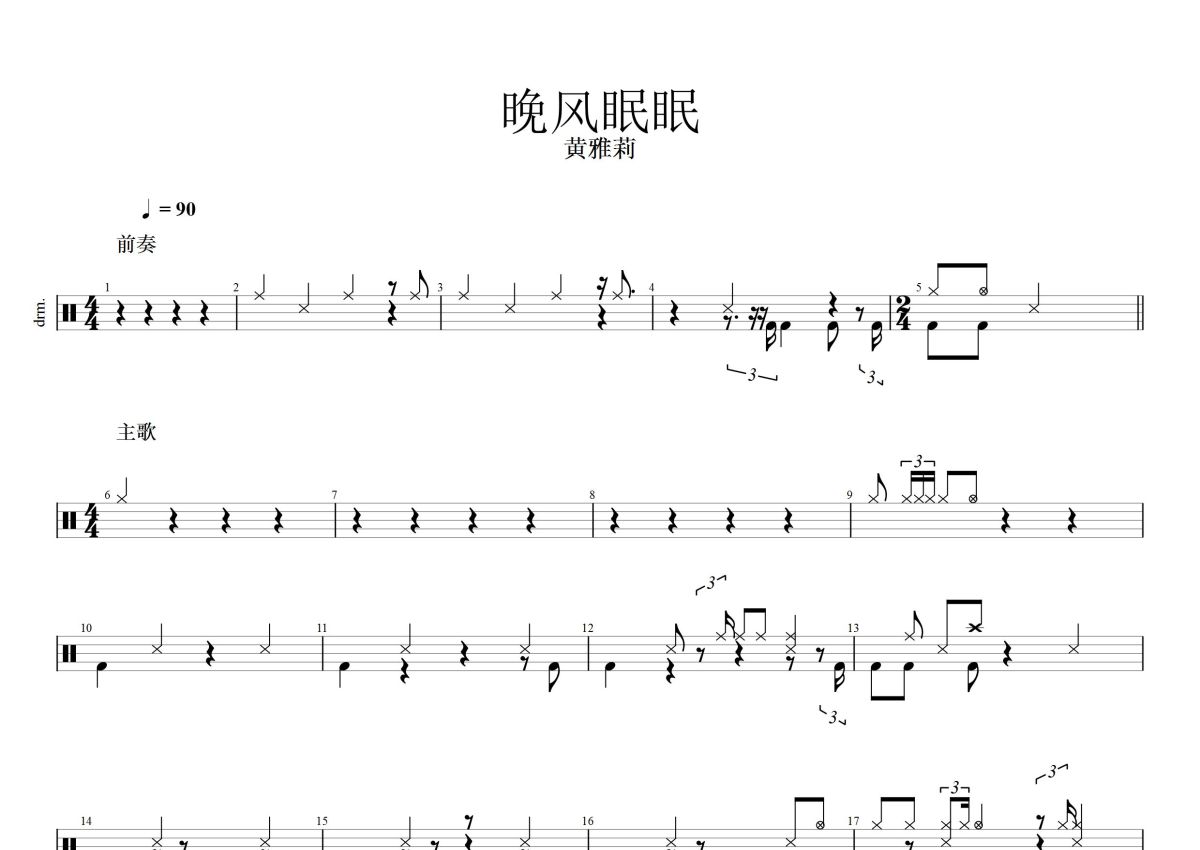 《晚风眠眠》是黄雅莉演唱的一首歌曲,这份鼓谱共有两张高清图谱,图谱由 @打鼓谱 编配上传,图谱使用五线谱编配,使用这份晚风眠眠架子鼓谱,你将能够轻松地敲打出这首黄雅莉的晚风眠眠,快来尝试吧。 黄雅莉的新歌《晚风眠眠》,盼星星盼月亮,睁眼闭眼都是你模样,人间的小风浪,都想陪你闯一闯。