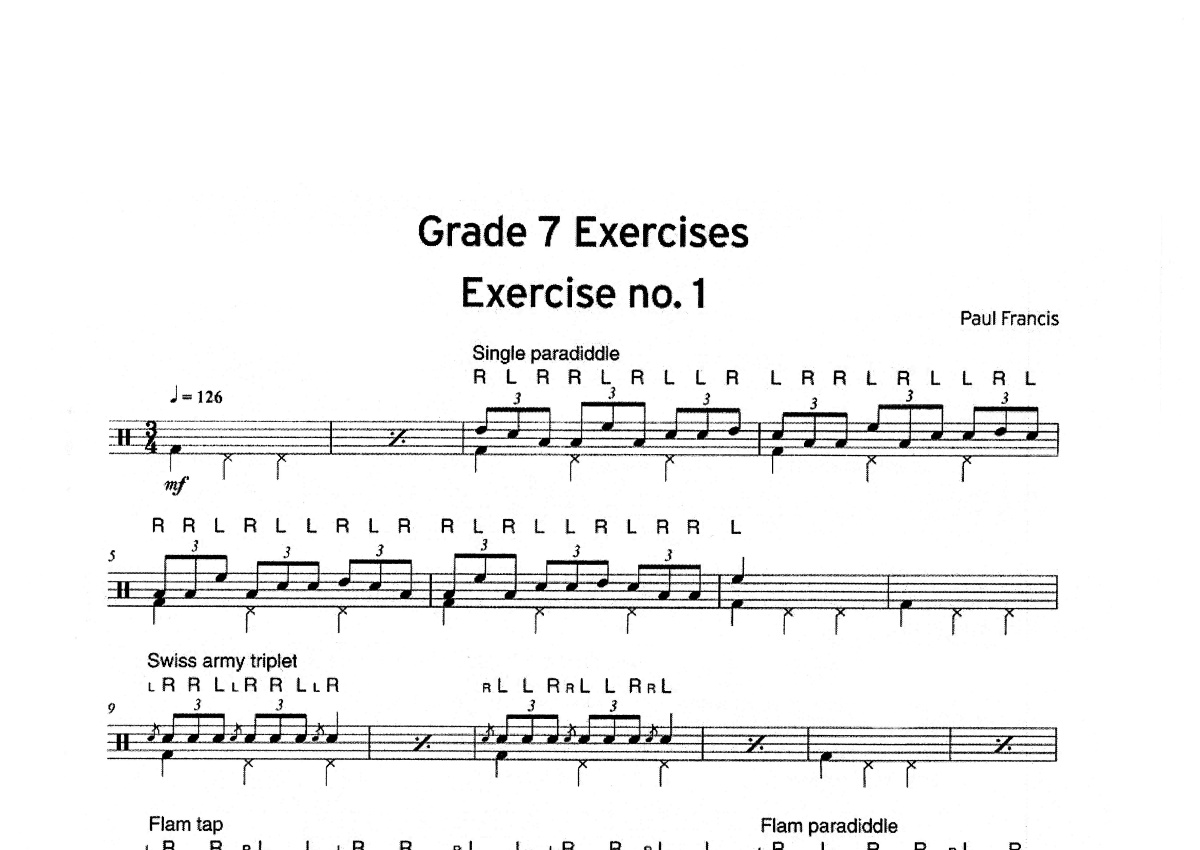 《七级曲目1》是鼓友演唱的一首歌曲,这份鼓谱共有一张高清图谱,图谱由 @打鼓谱 编配上传,图谱使用五线谱编配,使用这份七级曲目1架子鼓谱,你将能够轻松地敲打出这首鼓友的七级曲目1,快来尝试吧。