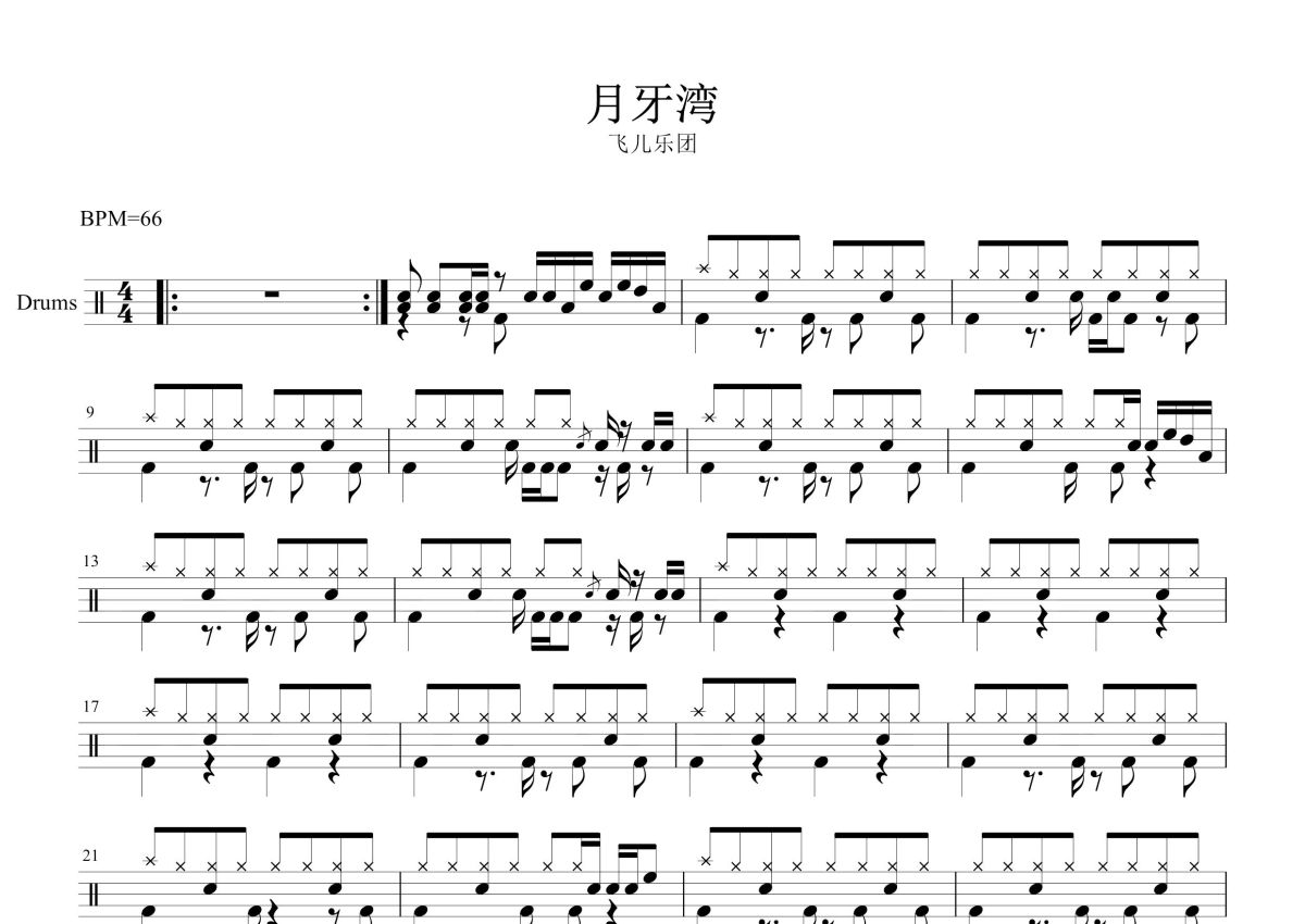 飞儿乐团《月牙湾》鼓谱 - 架子鼓谱