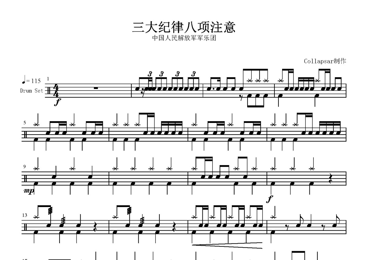中国人民解放军军乐团《三大纪律八项注意》鼓谱 - 架子鼓谱