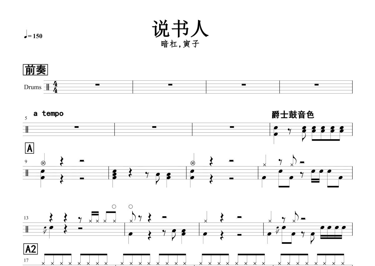 暗杠&寅子《说书人》鼓谱 - 架子鼓谱