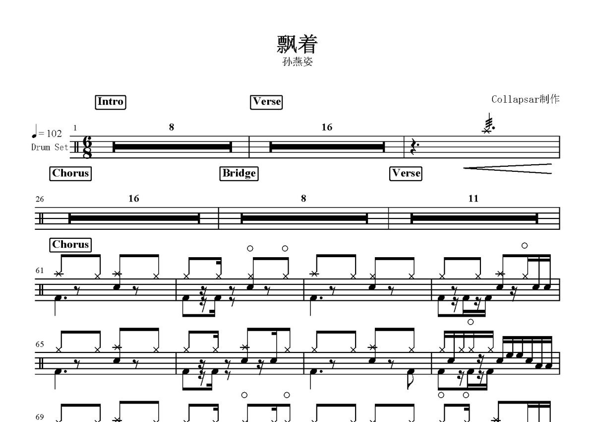 孙燕姿《飘着》鼓谱 - 架子鼓谱